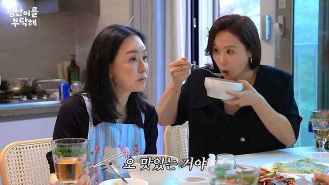 이 영상에서 김정난은 tvN 드라마 '사랑의 불시착'에서 함께 호흡을 맞췄던 김선영, 차청화, 장소연을 집으로 초대해 콩국수, 도토리묵 무침, 해물파전 등을 대접했다.