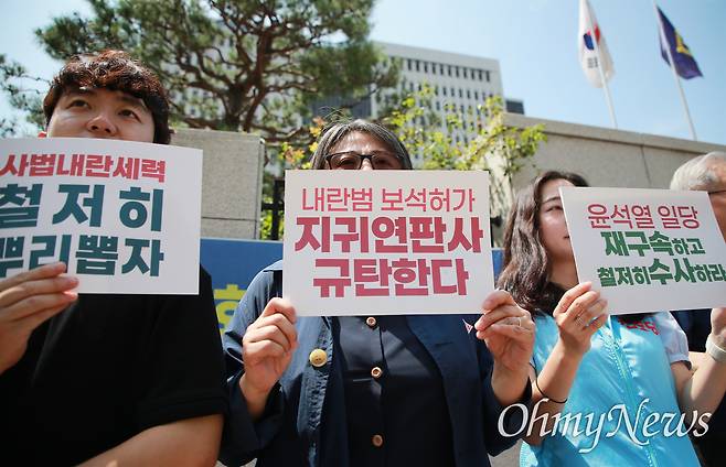 법원으로 간 시민사회, 일제히 규탄 손팻말