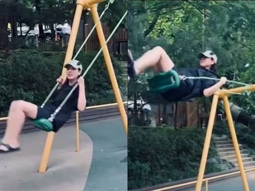 공개된 첫 번째 게시물에는 손예진이 동네 놀이터에서 신나게 그네를 타는 모습이 담겨 있다. 청순한 이미지와는 또 다른 소녀 같은 매력이 돋보인다.