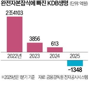 산은이 대규모 증자를 추진하는 것은 KDB생명의 건전성이 급격히 나빠져서다. 이 회사의 자기자본(자본총계)은 1분기 말 -1348억원을 기록했다. 2023년 말 3856억원에서 작년 말 613억원으로 급감한 데 이어 올 1분기에는 마이너스로 전환했다. 금리가 하락하면서 시가로 평가한 부채가 급증하고 반대급부로 자본은 감소한 것이다. 과거 KDB생명이 판매한 고금리 계약이 부메랑이 돼 건전성을 갉아먹고 있다는 분석도 나온다.