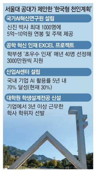 서울대 공대는 정부가 '한국형 천인계획'을 가동해 매년 세계적 수준의 공학 인재를 국내로 불러들여야 대학은 물론 산업까지 경쟁력을 갖출 수 있다고 강조했다.