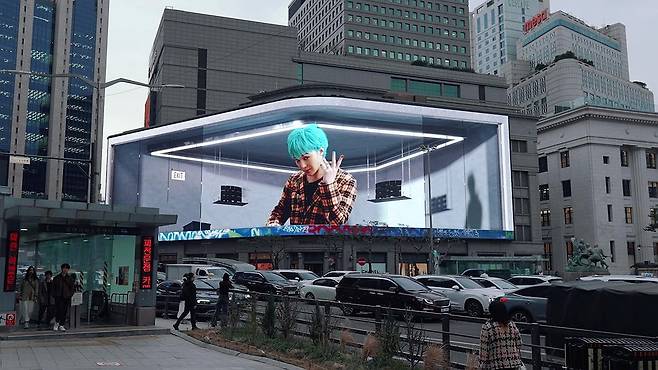 신세계스퀘어는 서울 명동부터 을지로 일대를 영상미디어로 물들이는 옥외광고물 자유표시 구역인 '명동스퀘어'의 일부로, 신세계백화점 본점 외벽에 농구장 3개 크기의 초대형 디지털 사이니지(전광판)를 설치했다. 2025.6.17 [신세계백화점 제공. 재판매 및 DB 금지]
