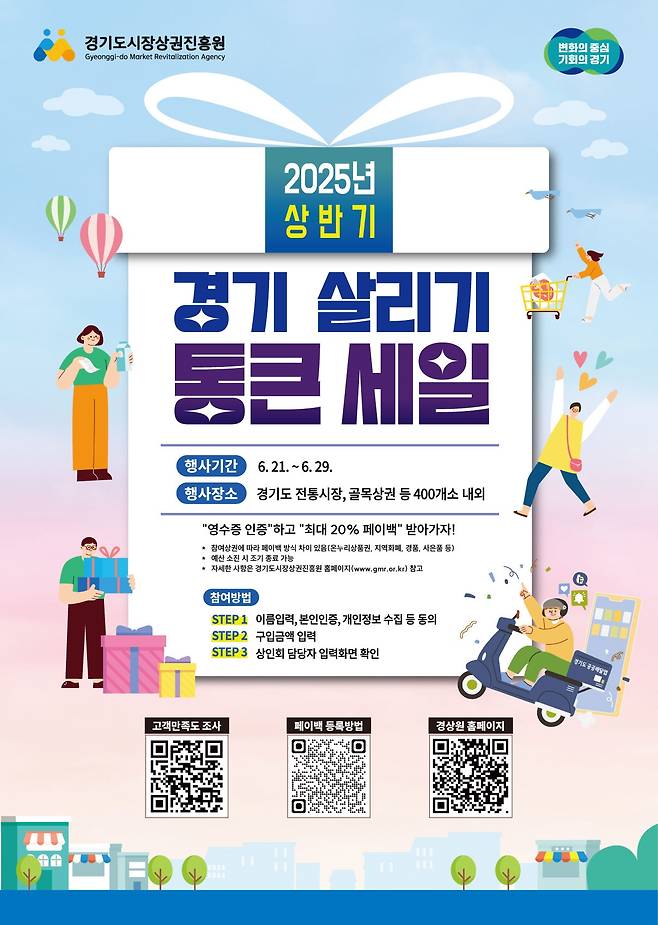 | ▲ 경기도와 경기도시장상권진흥원이 도내 소상공인의 매출 회복과 소비 진작을 위해 6월 21일부터 29일까지 개최하는 '2025년 상반기 경기 살리기 통큰 세일' 행사 포스터. |