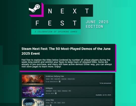 스팀이 공개한 'The 50 Most-Played Demos'에 따르면, 이 작품은 고유 플레이어 수 기준 상단에 배치돼 이번 'SNF' 기간(6월 9~17일) 동안 가장 많은 이용자가 체험한 작품으로 소개됐다.
