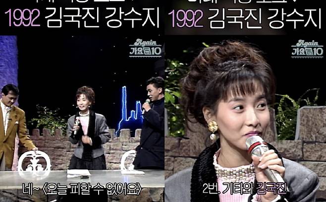 이날 MBC 송승환은 당시 '가요톱텐' 방송의 '오늘 피할 수 없어요' 코너에 가수 강수지를 소개했다.