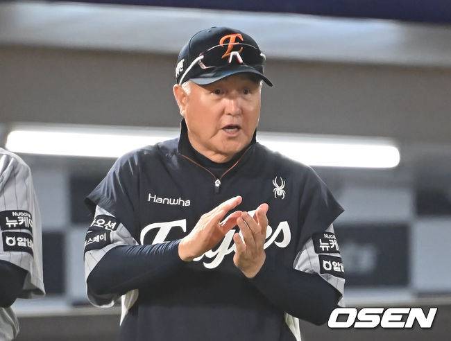 한화 이글스 김경문 감독이 롯데 자이언츠에 6-0으로 승리한 후 선수들을 격려하고 있다. 2025.06.17 / foto0307@osen.co.kr