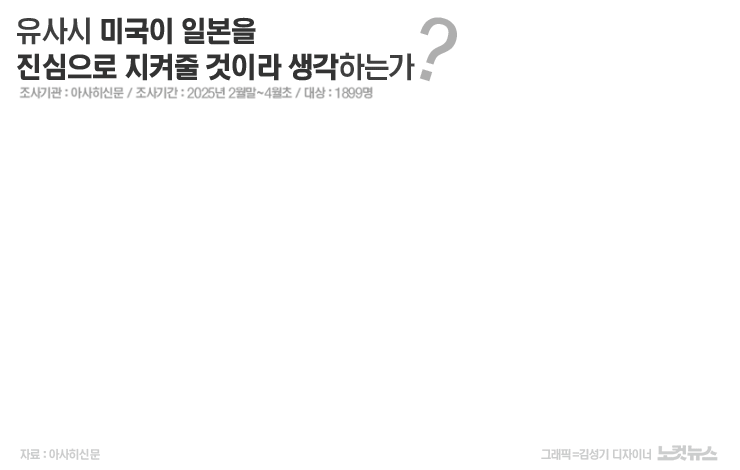 일본 아사히신문이 전후 80주년을 맞아 일본 전국을 대상으로 여론조사를 실시한 결과, "유사시 미국이 일본을 진심으로 지켜줄 것이라 생각하는가"라는 물음에 '그렇다'라고 답한 일본인은 15%에 불과했다. 신문은 "미국 우선주의를 강조하는 트럼프 행정부의 행보가 불신으로 이어진 것으로 보인다"고 해석했다.