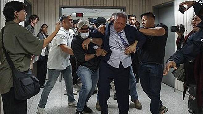▲ 이민법원에서 이민당국에 체포되는 랜더 뉴욕시 감사관