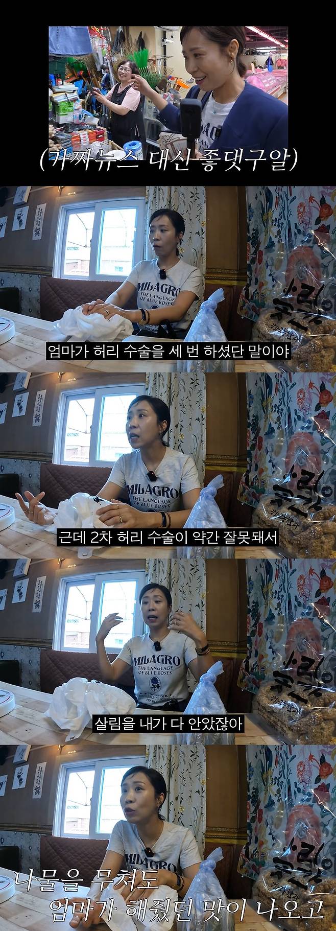 정선희는 "우리 엄마가 허리를 다치신 지 거의 10년 넘었다. 엄마가 허리 수술을 3번 하셨다. 2차 허리 수술이 약간 잘못돼서 보행이 걸으면 많이 쉬어여 되고 오래 서있기 힘들고 그러니까 살림을 내가 다 안았다"라고 털어놨다.