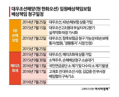 이후 대우조선 임원들은 KB손보와 메리츠화재에 보험금을 청구했으나 거절당했다. KB손보는 대우조선 대표가 분식회계 내용을 알고도 이를 고지하지 않았기 때문에 고지의무 위반으로 보험계약이 해지됐다며 사외이사들에게 보험금을 지급할 수 없다고 했다. 하지만 법원 판단은 달랐다. 법원은 대우조선의 정황통지가 유효하다고 봤고 KB손보가 보험금을 지급해야 한다고 판결했다. 메리츠화재는 면책조항이 적용됐다. 분식회계 관련 소송은 메리츠화재의 보험 가입 기간에 발생했지만 보험금 지급 효력은 회사가 소송 가능성을 인지하고 이를 보험사에 통지(정황통지)한 때로 봤기 때문이다.