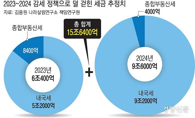 내국세는 2023년 5조2000억원, 2024년엔 9조2000억원이 줄어든 것으로 분석됐다. 2022년 법인세 인하 등 세법 개정으로 2023년 세수가 줄었고, 2024년에는 2022년~2023년 개정 효과가 누적되며 세수 감소 폭이 더 커졌다. 종부세는 2023년엔 8400억원, 2024년에는 4000억원 덜 걷혔다.