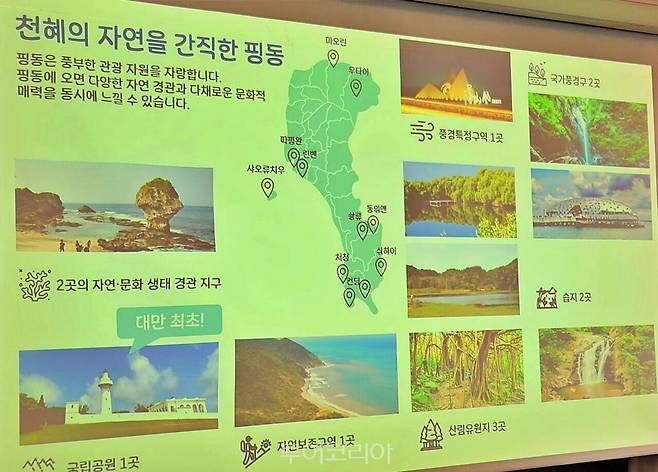 핑동현 교통관광처 황국유 처장은 "핑동은 대만에서 유일한 지역이 많다. 대만에서 유일하게 3개의 해협과 접하고 있고, 대만 유일의 산호섬 '소류구'도 있다"며 "유일한 조건을 가지고 있는 핑동에 한국여행객이 많이 놀러 오길 바란다"고 밝혔다.