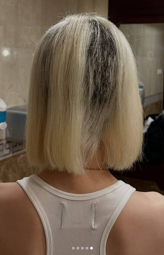 3년 만에 금발소다로 깜짝 변신하려고 투어를 마치고 한국에 돌아와 평소 다니던 샵에서 탈색을 했는데 탈색시간을 너무 오래 방치해서 잘못돼 머리가 전체적으로 뿌리부터 녹아내렸고,결국 뒷통수와 옆머리 전체가 삭발 머리가 되었어요.