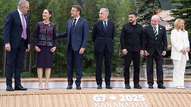 이런 가운데 G7 정상회의체 초청받아 회의장소에 도착한 볼로디미르 젤렌스키 우크라이나 대통령은 트럼프 대통령이 조기 귀국해 G6 정상들만 남은 자리에서 러시아에 맞서 싸우고 있는 우크라이나에 대한 지원을 호소했습니다.