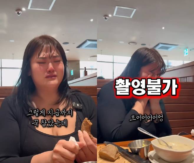 수지 씨는 레스토랑에서 빵을 먹은 후 눈물을 쏟기 시작했다.