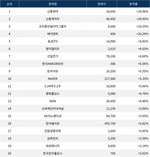 [서울데이터랩]신풍제약 29.98% 상한가...실시간 상승률 1위