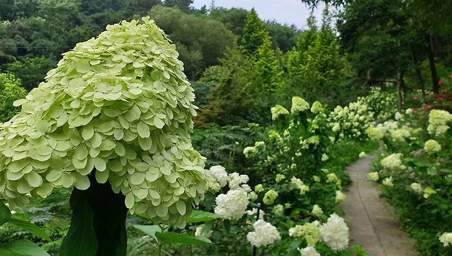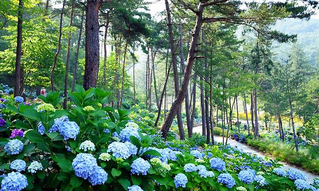 | ▲ 해남 포레스트수목원의 수국. 포레스트수목원 넓은 숲속에 250종 8000여 그루의 수국이 심어져 해마다 많은 여행객을 불러들인다. |