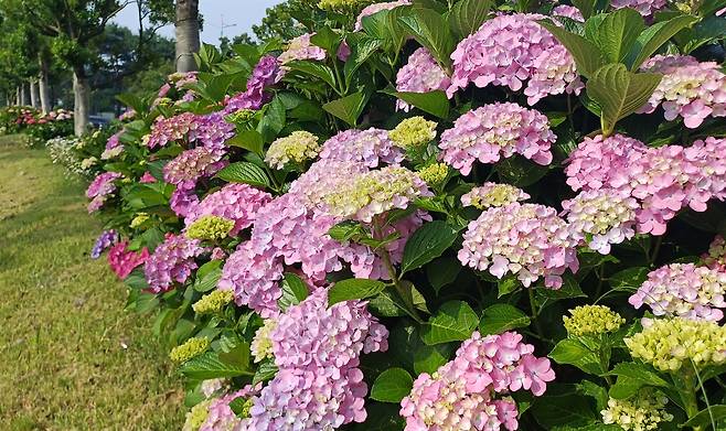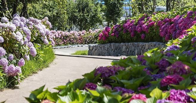 수국은 물을 좋아하는 꽃이다. 한자로 '水菊(수국)'이다. 수국은 남도를 좋아한다. 남도의 햇볕과 물, 바람 등 자연조건이 수국을 웃음 짓게 한다. '수국 맛집'이 남도에 많은 이유다. 꽃만 아름다운 게 아니다. 바다 풍경과 어우러져 더 멋스럽다. 지난 14-15일 이곳을 찾았다.