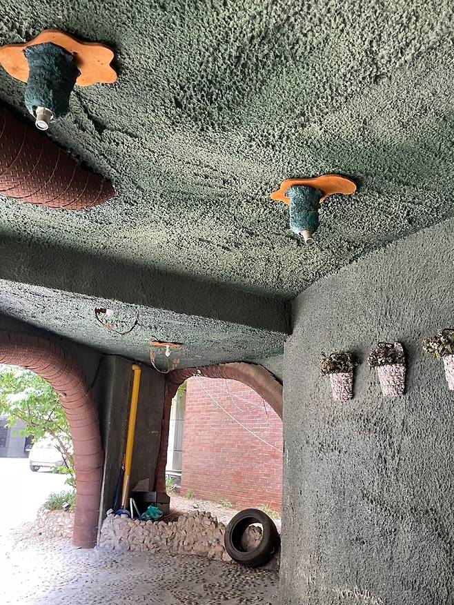 | ▲ 12주 건물 주차장 벽과 천장 12주 건물 주차장 벽과 천장도 개성이 넘친다. |