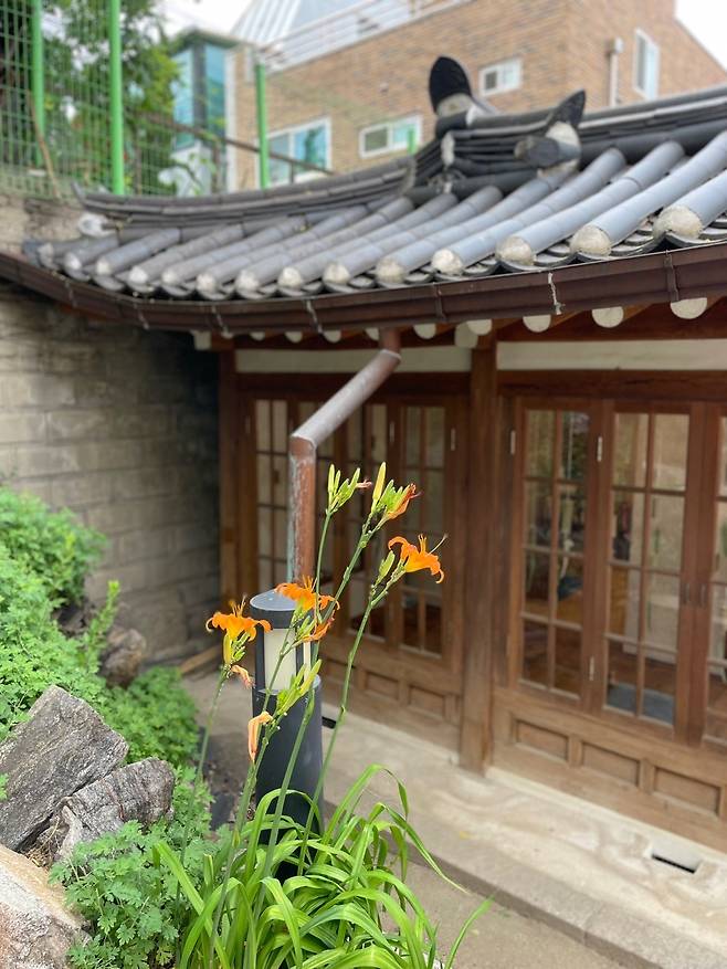 | ▲ 초여름이 제철인 나리와 한옥이 잘 어우러진다. 초여름이 제철인 우리꽃 나리, 선명한 색깔이 한옥과 어우러져 어우러져 아름답다. |