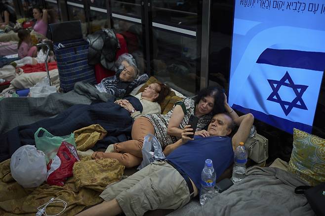 | ▲ 17일 밤 텔아비브 인근 라마트간의 지하철 역에서 이란의 미사일 공격에 대비해 시민들이 대피해 있다. |