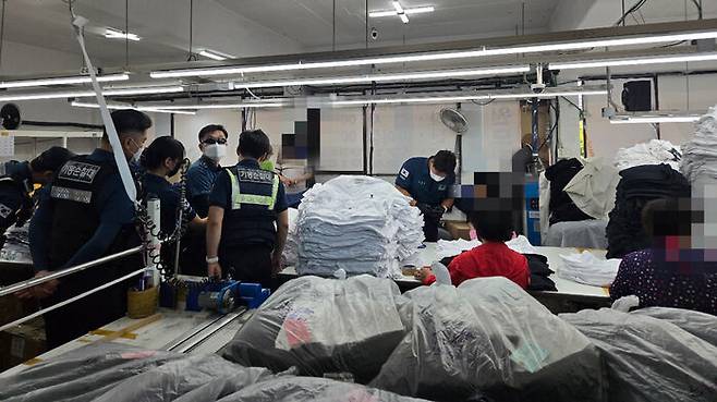 경찰은 의류들의 출처를 추적한 끝에 중랑구 한 상가건물에서 제작된 사실을 확인하고 현장을 급습했습니다.