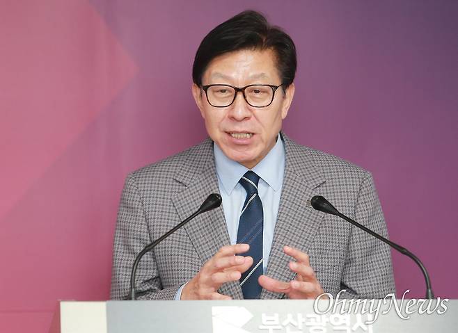18일 부산 영도구 한국해양과학기술원 7층을 찾은 박 시장은 22차 부산미래혁신회의에서 앞서 연 언론브리핑을 통해 "최근 정부의 해수부 이전 발표 등에 대한 우리 시의 입장을 말씀드린다"라며 준비한 '글로벌해양허브도시 부산 조성 전략'을 발표했다.