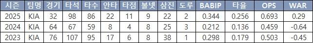 | ▲ KIA 김호령의 주요 타격성적(출처: 야구기록실 kbreport) |