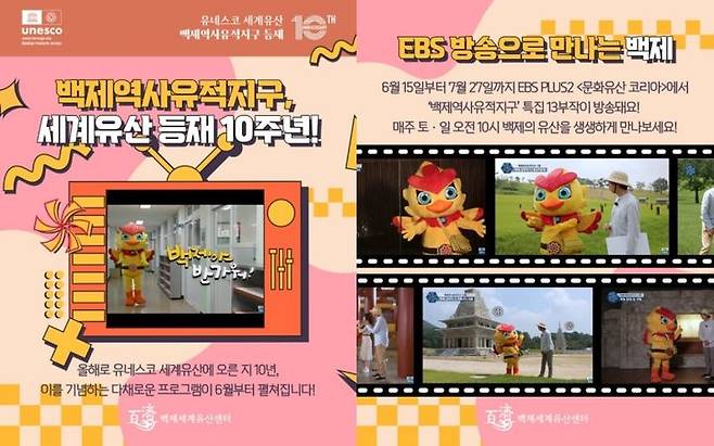 또 6일 오후 3시45분에는 EBS 1TV에서 백제역사유적지구 10주년 특집 다큐멘터리도 방영된다.