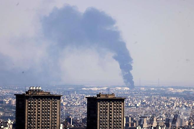 [포토] 이스라엘 공습으로 연기 솟는 테헤란