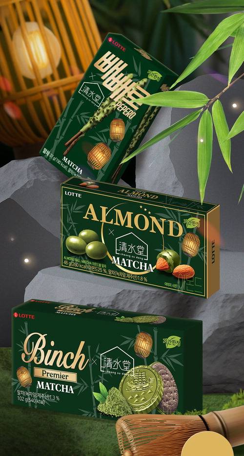 롯데웰푸드가 도심 속 푸른 정원과 말차 메뉴로 유명한 카페 '청수당'과 협업한 말차맛 시즌 한정판 제품을 출시했다고 최근 밝혔다. '롯데웰푸드×청수당' 컬래버레이션 제품은 '빈츠' '아몬드볼' '빼빼로' 3종이다.