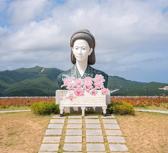 | ▲ 수로부인 헌화공원. 헌화가의 수로부인과 철쭉꽃으로 멋진 포토존을 조성했다. 삼척시청 누리집에서 갈무리. |