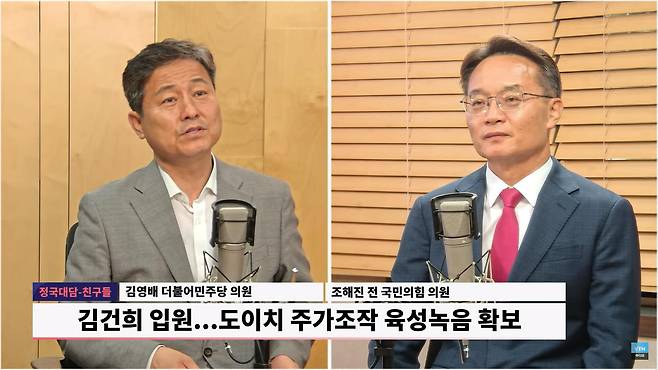 ◇ 이익선 : <정국대담 친구들> 시간입니다. 강대강 대치가 아닌 재치 있는 입담과 썰이 존재하는 시간이죠. 편안한 친구들, 이 시간 함께하는 분들 단짝 혹은 버디로 칭해 봤습니다. 김영배 더불어민주당 의원, 조해진 전 국민의힘 의원 두 분 모셨습니다. 어서 오십시오.