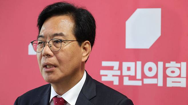 ▲ 국민의힘 송언석 원내대표가 18일 국회 원내대표실에서 당 3선, 4선 의원들과 간담회를 마친 뒤 발언하고 있다.