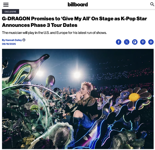 이외에도 피플, 올케이팝, 버라이어티 등 글로벌 외신들이 지드래곤의 월드투어 공연을 집중 조명했다.