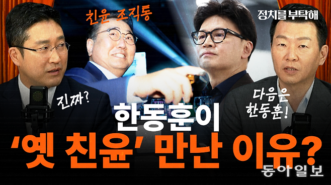 ▷ 유근형: 네 윤희석 대변인 나오셨으니까 이거 하나만 좀 여쭤보겠습니다. 어제 최근에 한동훈 전 대표가 그 친윤계 옛 외곽 조직인 뭐 새로운 미래를 준비하는 모임 회장님을 만나셨다고 하는데 이게 뭔가 좀 당내에 좀 영향의 확대 뭐 이런 행보로 볼 수 있는 것 아닌가요?