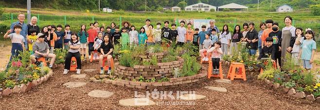 | ▲ 도마초등학교 새로운 교육 공간인 ‘살랑살랑 바람결 정원’이 지난 2일 완성됐다. 도마초등학교 학생들과 교직원들이 새로운 생태정원을 기념하고 있다. |