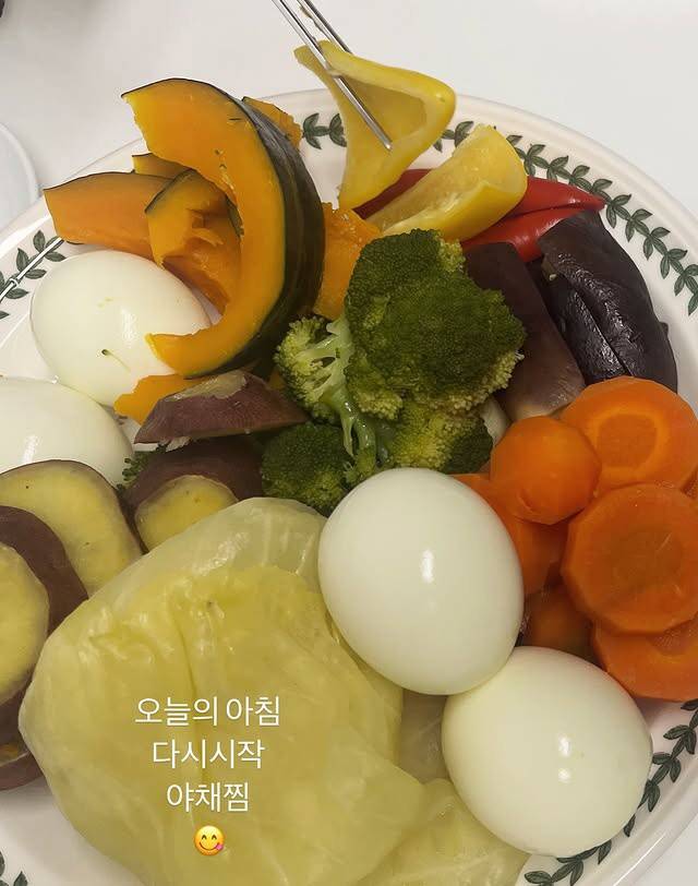 공개된 사진에는 브로콜리, 고구마, 당근, 단호박, 양배추 등 건강을 생각한 식단이 담겨있다. 수술을 앞둔 남편을 위해 준비한 식단으로 보인다.
