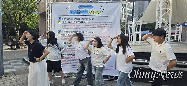 그러면서 그는 "해마다 물가 인상은 감당하기 어려운데 최저임금 받고 있는 우리의 삶은 생활은커녕 더 쪼그라들고 있으며, 정리해고 두려움에 불안하다"라고 했다.