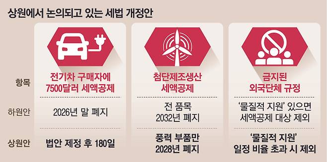 이 조항은 중국 기업이 세액공제 혜택을 받는 것을 막기 위한 조치인데, 하원 법안이 유지될 경우 배터리 공급망에서 중국을 완전히 배제하기 어려운 한국 기업에게는 타격이 있을 수 있다는 우려가 제기됐다.