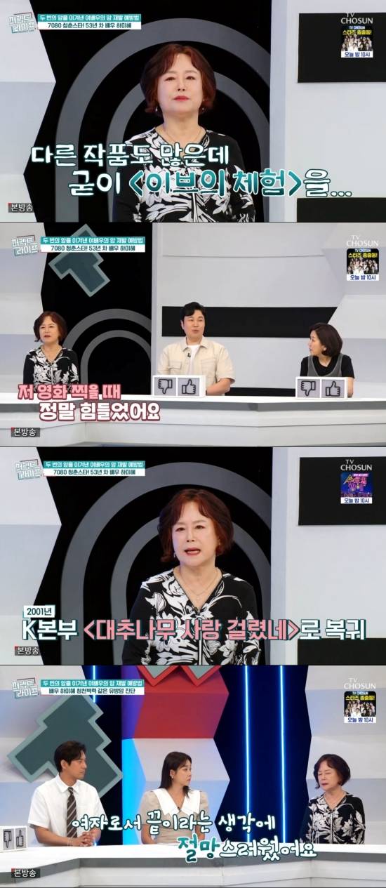 18일 방송된 TV조선 '퍼펙트 라이프'(이하 '퍼라')에는 데뷔 53년 차 배우 하미혜가 게스트로 출연해 일상을 공개했다.