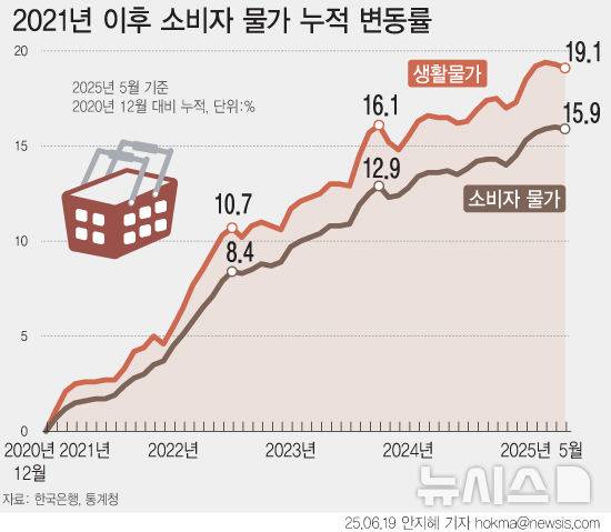 [그래픽] 생활물가, 4년새 누적 상승률 19.1%…소비자물가보다 3.2%p↑