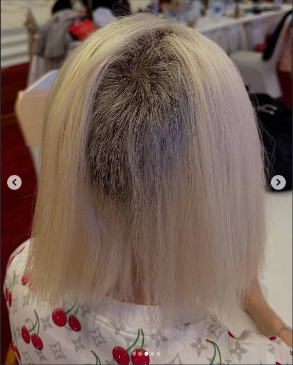 그는 "평소 다니던 샵에서 탈색을 했는데 너무 오래 방치해서 머리가 전체적으로 뿌리부터 녹아내렸다"라며 "뒷통수와 옆머리 전체가 삭발 머리가 되었다"고 전했다.