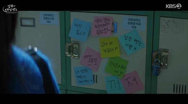 소문은 일파만파 퍼졌고, 학우들은 "쟤가 아영 남친한테 꼬리 친 애"라고 수군거렸고, 사물함엔 '여자 망신', '더럽다', '꺼져' 등 욕설이 붙어 있었다. 아영은 "그 뻔뻔한 얼굴 안 봐도 되겠네? 남의 남자는 탐내는 거 아니야. 아무리 갖고 싶어도 주인 있는 걸 건드리면 안 되지"라고 일갈했다.