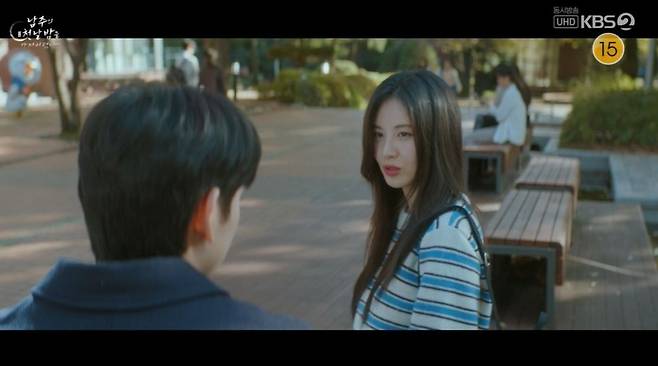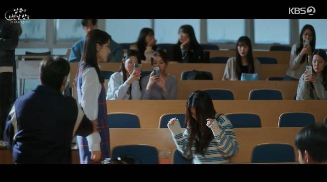 K는 아영에게 "기분 나빠하지 말고 들어"라며 준수에 대해 말해주려 했지만, 아영은 "내 남친이랑 도서관에서 영화 한 편 찍었다며?"이라고 먼저 말했다.