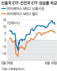올해 신흥국 주식시장에 투자하는 상장지수펀드(ETF)가 미국 등 선진국 주식시장에 투자하는 상품보다 높은 수익률을 기록하고 있다.