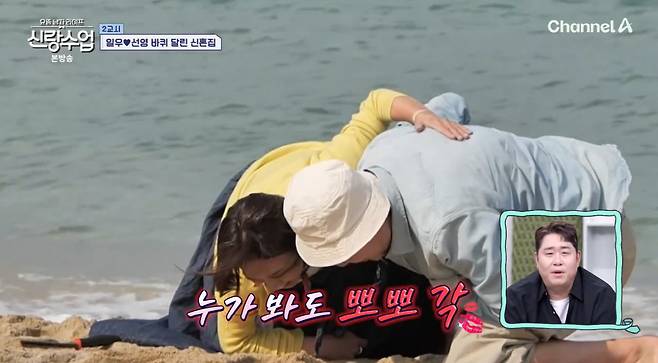 바닷가에서 MZ들이 찍는 인증샷을 남겼고, 다정한 모습에 문세윤과 이다해는 "거의 뽀뽀각이다. 볼에라도 뽀뽀를 해야한다"라고 말해 웃음을 자아냈다.
