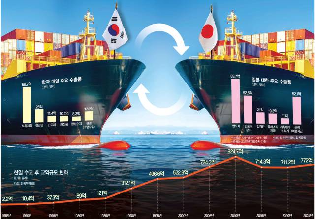 한일 수교 60주년을 맞아 양국이 그동안의 갈등을 딛고 한 단계 더 성숙한 협력 관계로 나아가야 한다는 주장이 힘을 얻고 있다. 미중 갈등이 심화하는 등 기존 무역 질서가 흔들리는 상황에서 소재와 부품이 강한 일본과 생산이 강한 한국이 파트너십을 이룬다면 유럽연합(EU)보다 강력한 경제 블록으로 영향력을 발휘할 수 있다는 분석이다. 그동안 반일을 외쳐온 여당 내부에서도 한일 자유무역협정(FTA)을 검토해야 한다는 목소리가 나오고 있는 것으로 확인됐다.