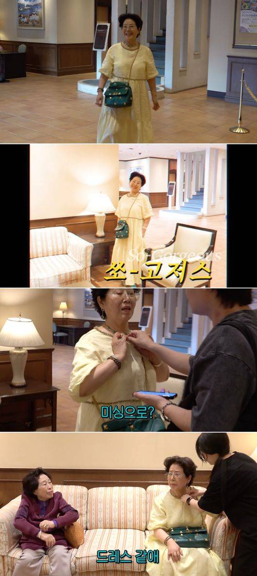 일본 요나고의 호텔에 도착한 선우용여는 화사한 드레스 같은 원피스로 환복했다. 청순, 발랄한 스타일의 연한 노랑색 반팔 원피스에 선우용여가 직접 비즈 장식을 더한 옷이 드레스 같은 화려함을 자랑했다.