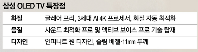 기술력이 소비자 호응을 이끌었다는 평가도 나온다. 삼성 OLED TV만의 ‘글레어 프리’ 기술은 조명이 밝거나 햇빛이 강한 환경에서도 화면의 빛 반사를 최소화해 몰입감을 높여준다. 블랙 표현력이 뛰어난 OLED 패널 특성과 맞물려 어두운 장면에서도 선명한 화질을 유지할 수 있다는 점이 호평받고 있다.